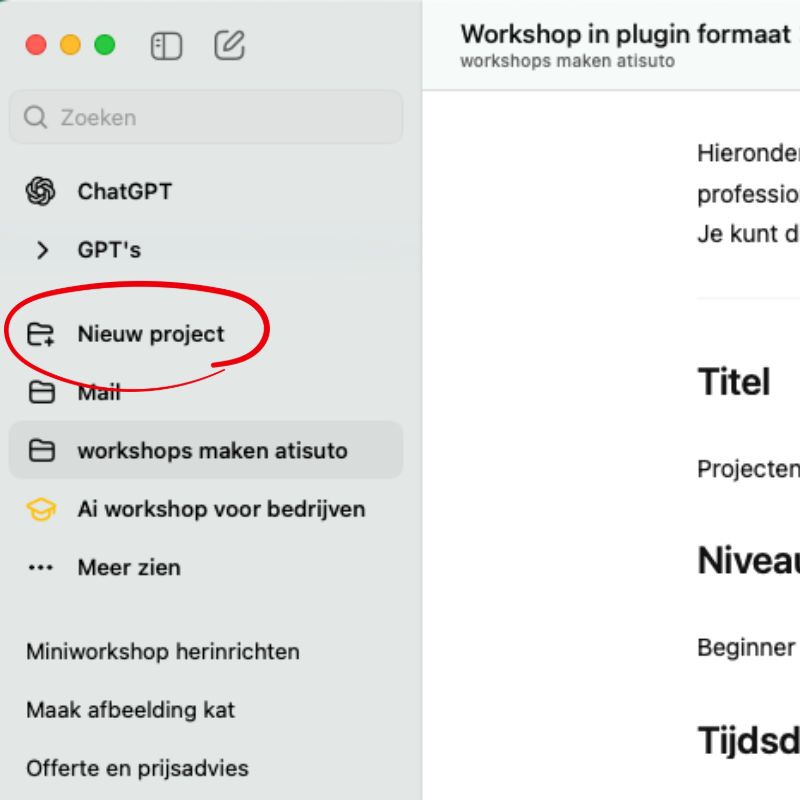 Projecten aanmaken in ChatGPT